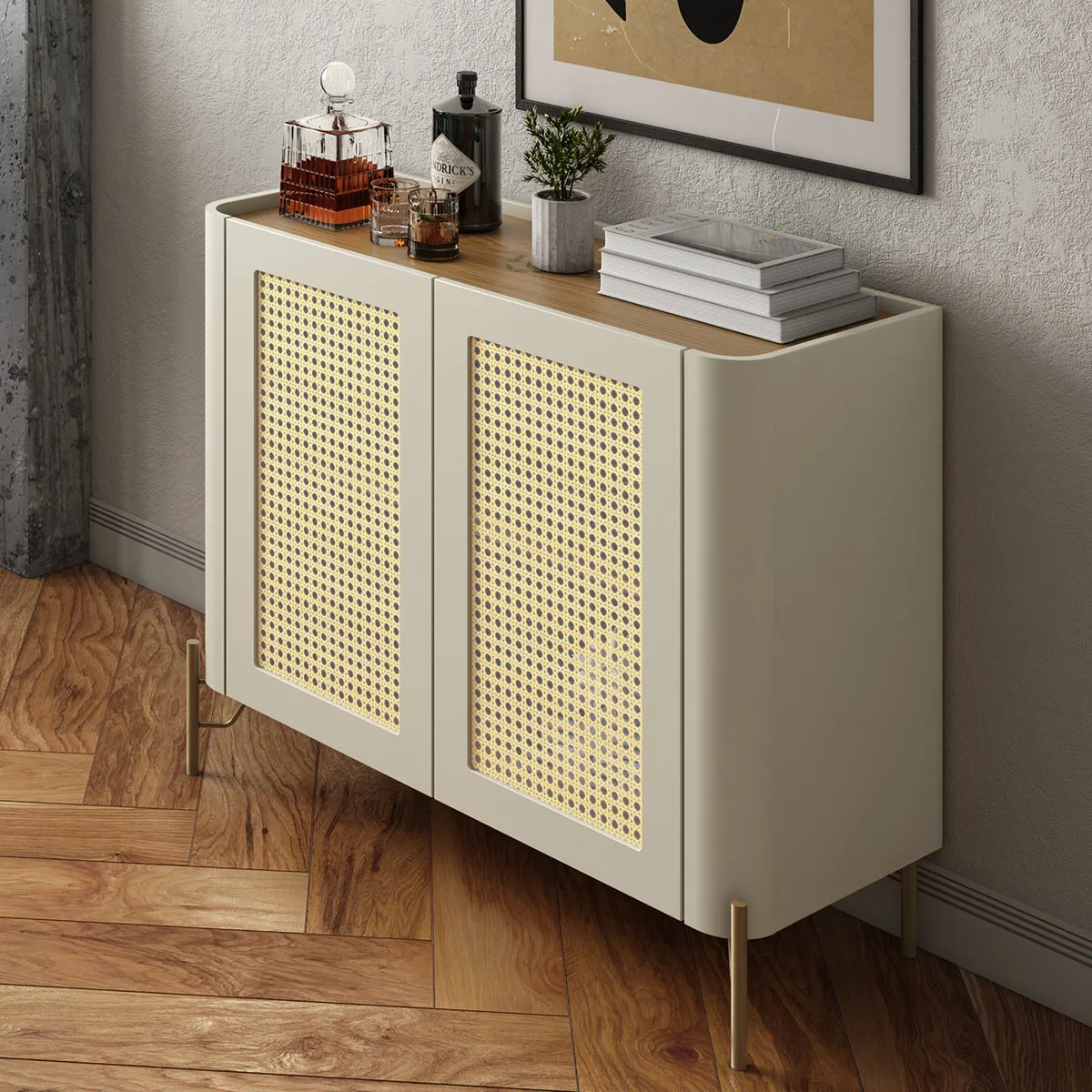 Buffet MDF com Palha Natural L98,5 X A81,5cm Grigio/Dourado