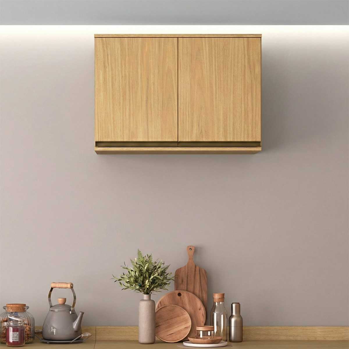 Armário Aéreo Suspenso de Cozinha Nova Dubai em MDF 80cm 2 Portas 2 Nichos Louro Freijó