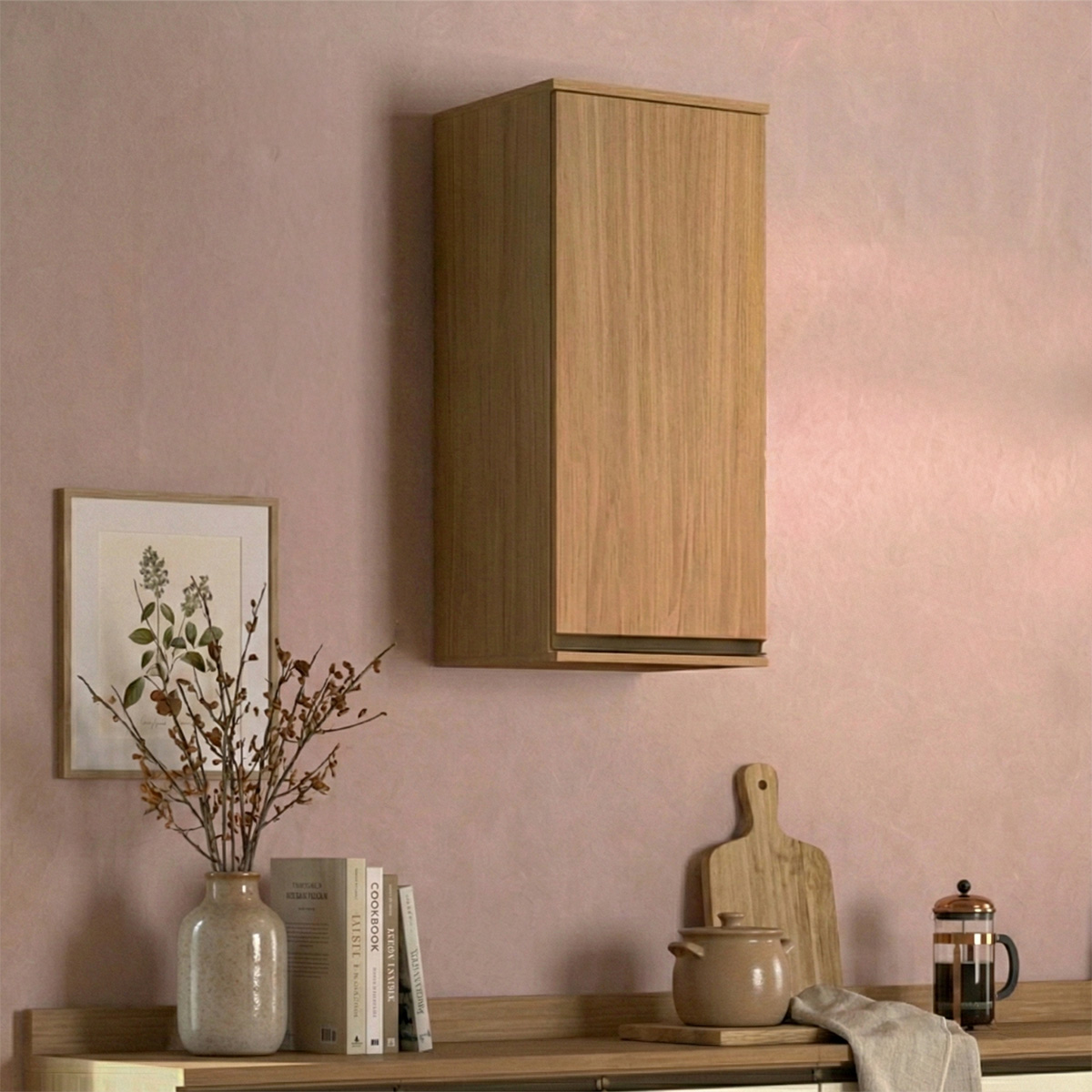 Armário Aéreo Suspenso de Cozinha Nova Dubai em MDF 40x90cm 1 Porta 3 Nichos Louro Freijó