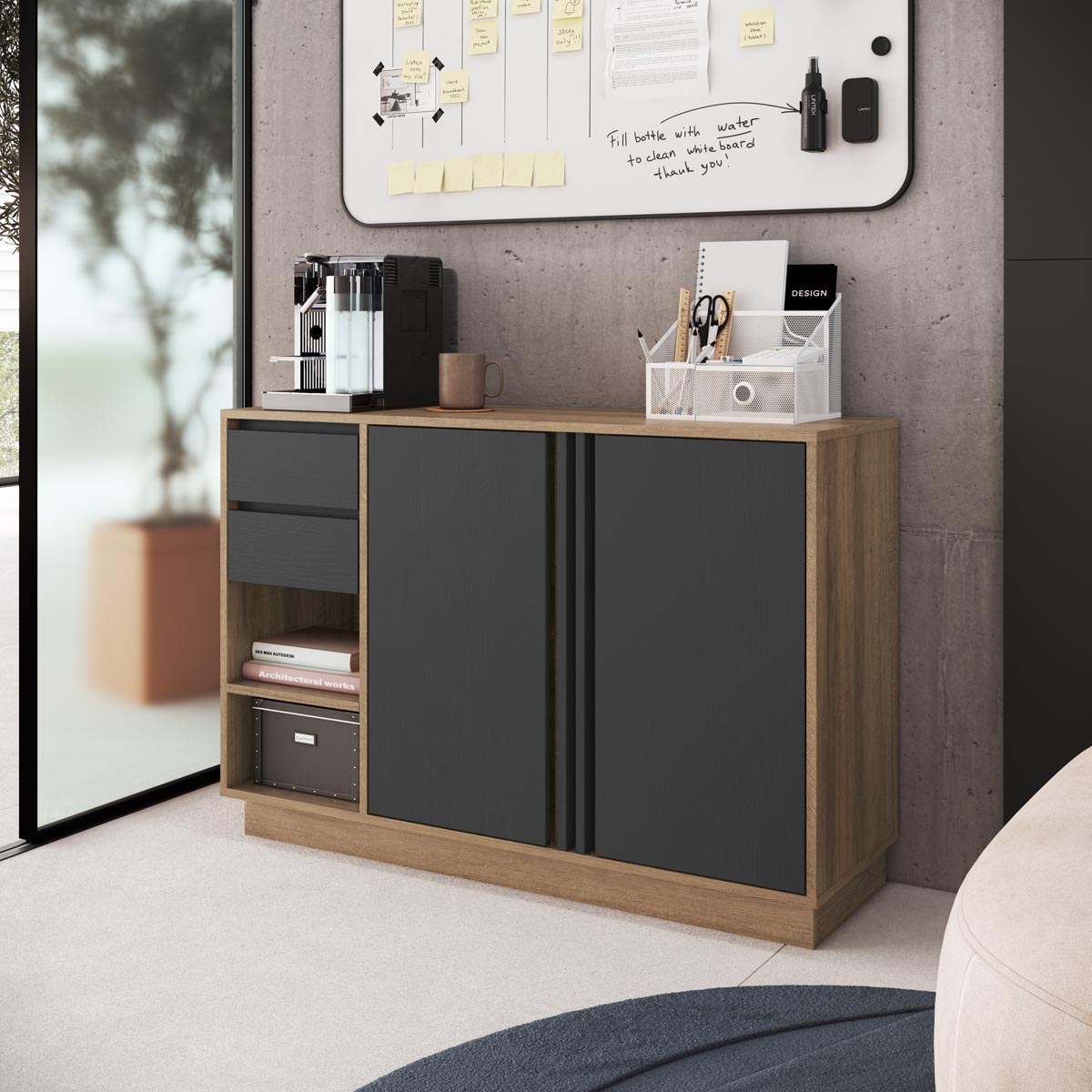 Armário Balcão para Escritório 110cm com 2 Portas 2 Gavetas
