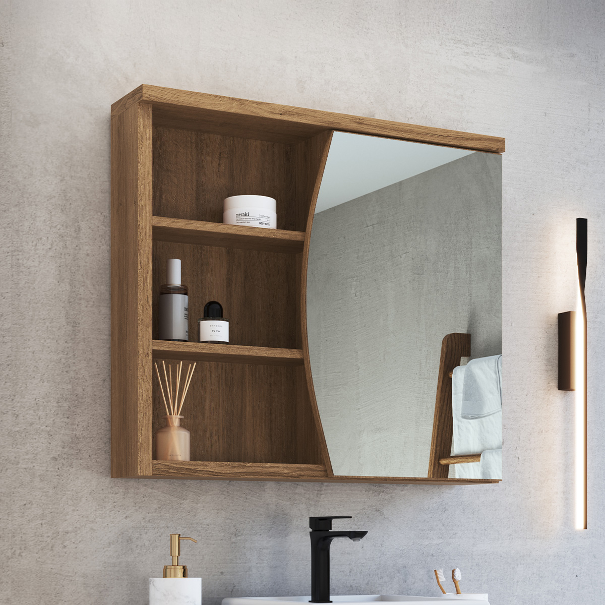 Armário Espelheira para Banheiro Laura 70cm 1 Porta e 2 Prateleiras