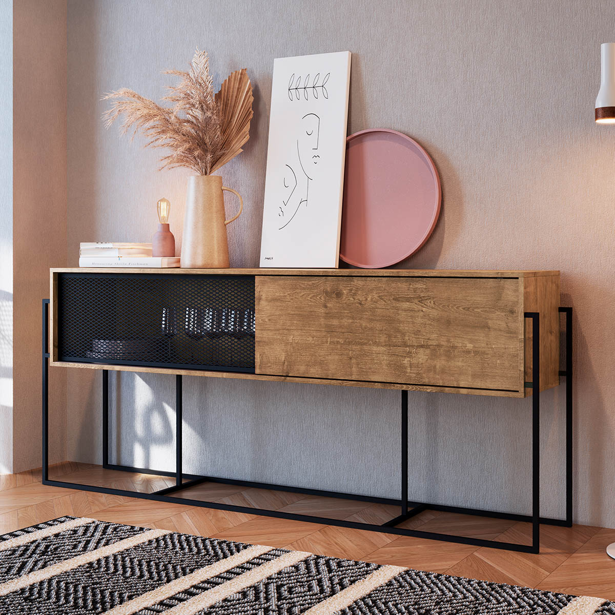 Balcão Buffet 2 Portas 188cm Industrial Hanover/Preto