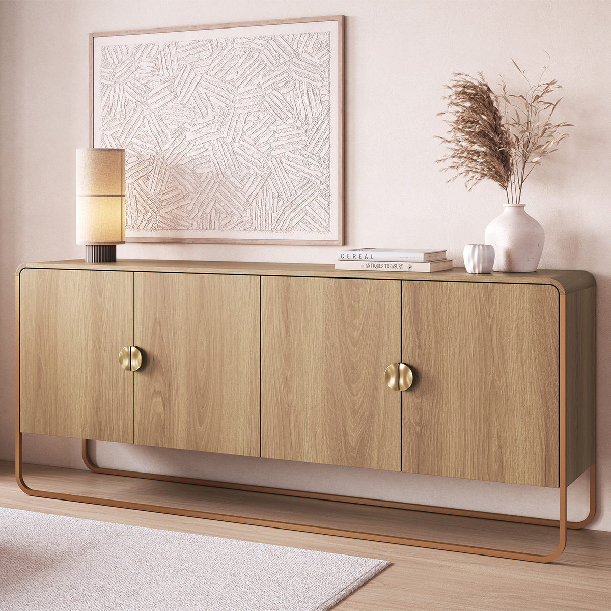 Balcão Buffet Luna Orgânico 180x75cm 4 Portas e Pés em Metal