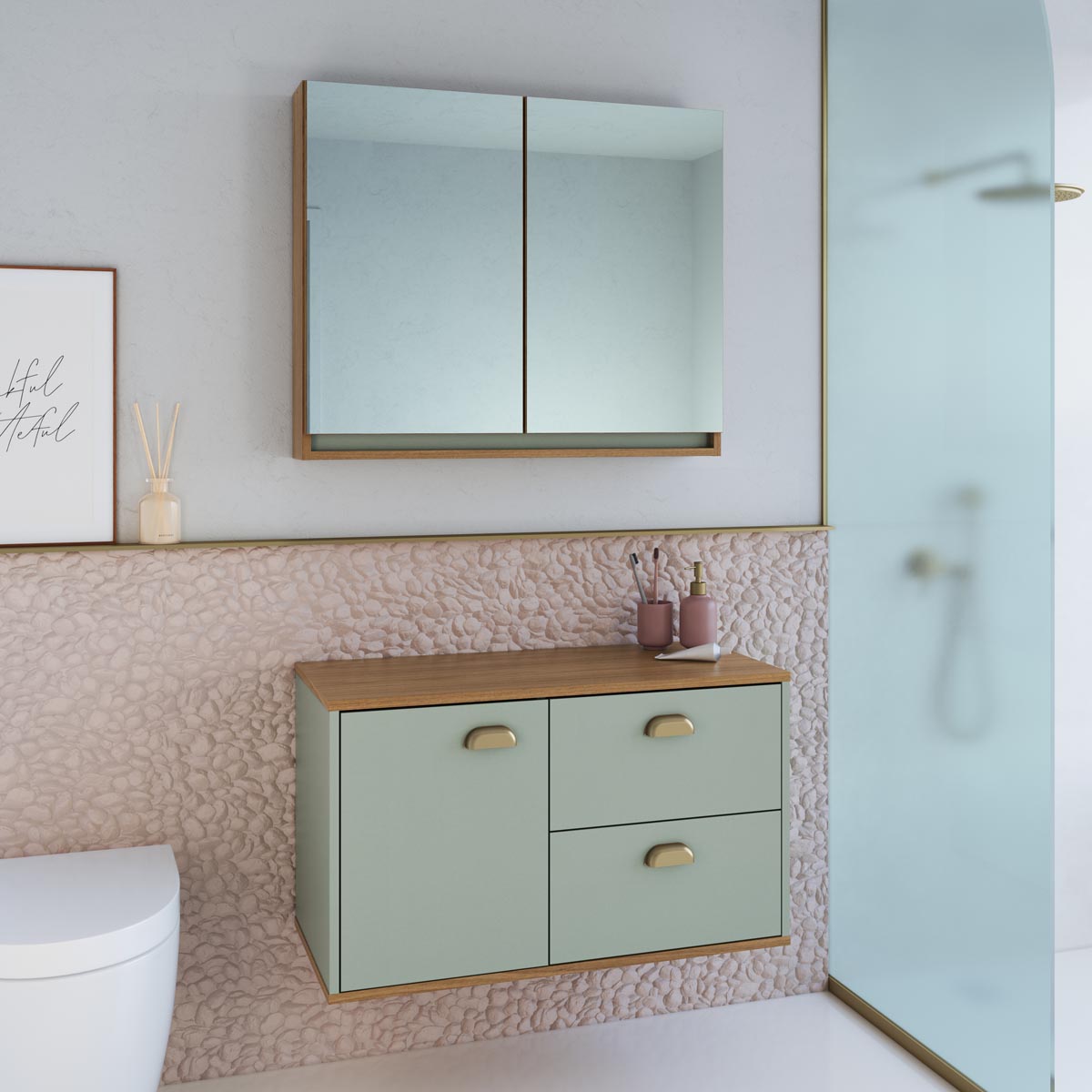 Conjunto Banheiro Suspenso Gabinete 80cm Lívia c/ Espelheira 2 Portas
