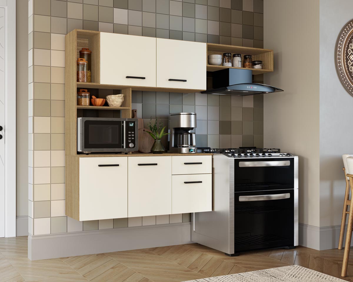 Conjunto de Cozinha Suspenso Clover 122,4x200cm 5 Portas Nature/Champanhe