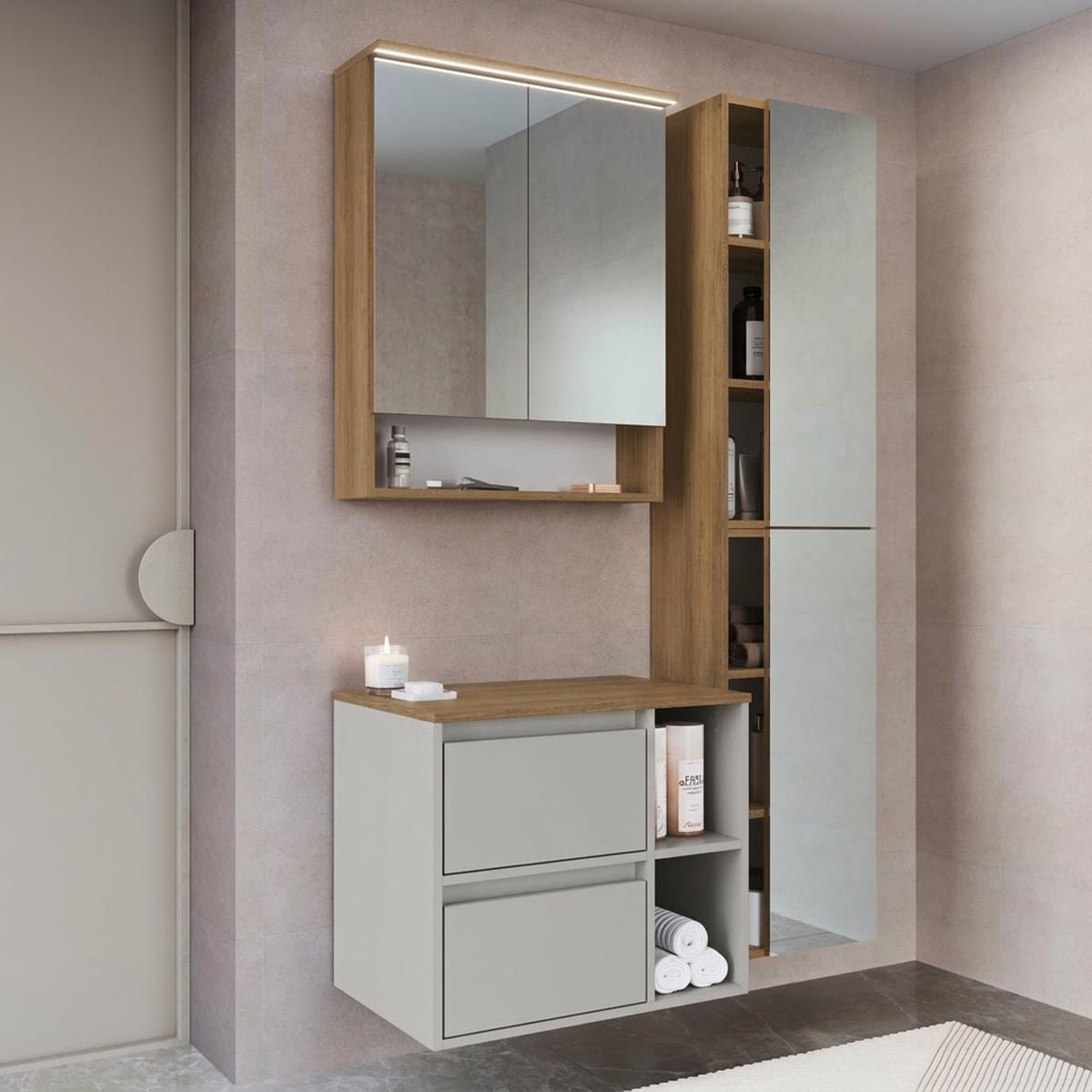 Conjunto para Banheiro Suspenso 96cm 4 Peças Iluminação em Led