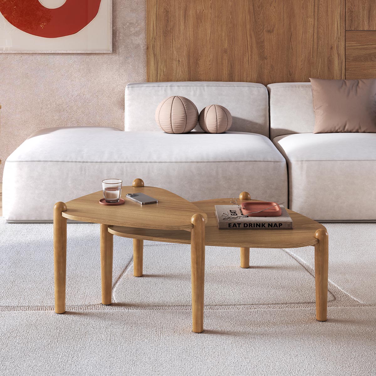 Conjunto para Sala de Estar 2 Mesas de Centro Orgânicas Pés em Madeira