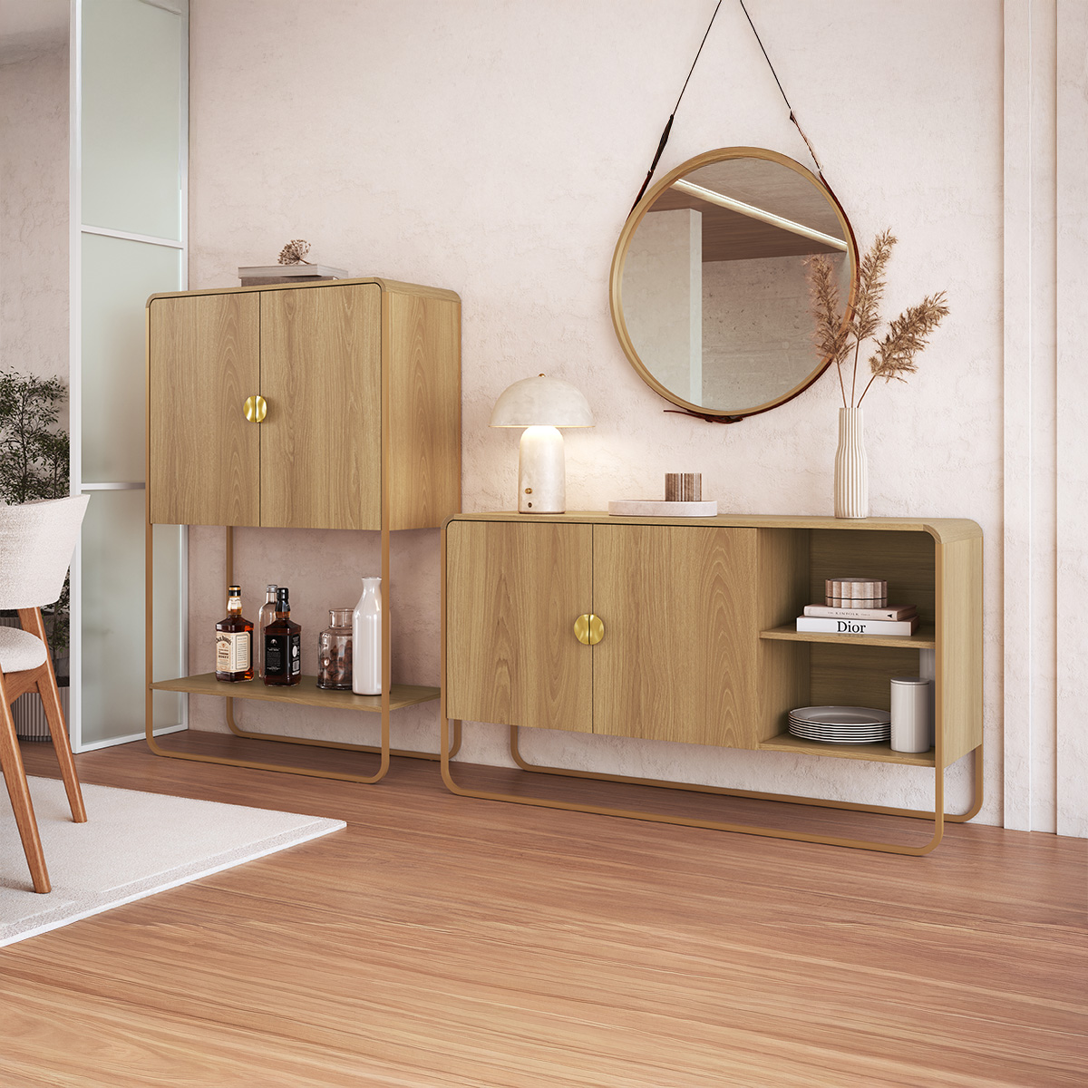 Conjunto Sala de Estar Buffet e Bar Estilo Orgânico Hanover/Dourado