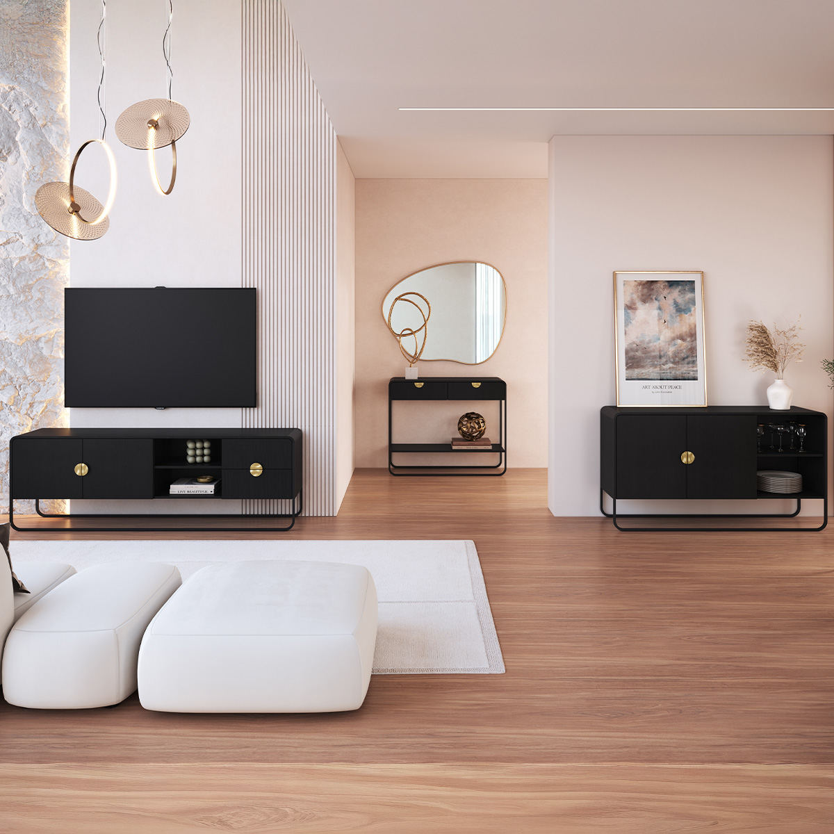 Conjunto Sala de Estar Rack Buffet Aparador Estilo Orgânico Hanover/Dourado