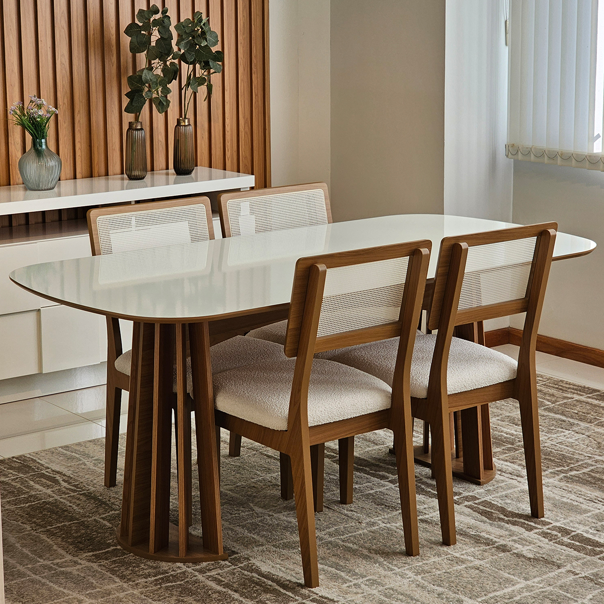 Conjunto de Jantar Mesa 4 Cadeiras MDF Freijó/Bege Rústico