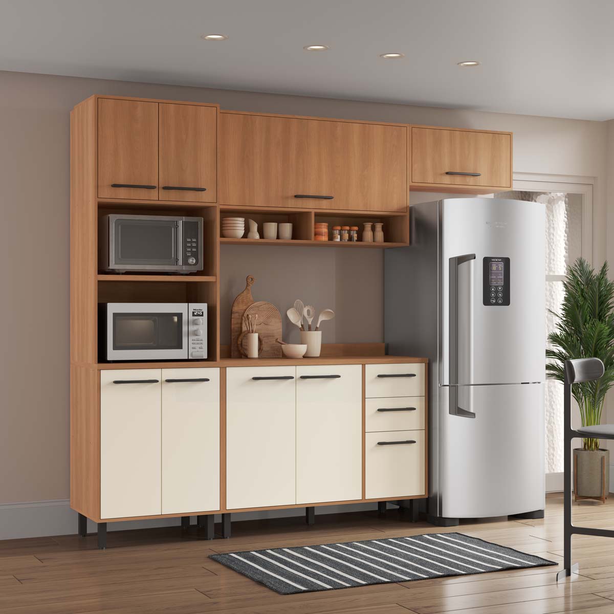 Cozinha Modulada Havana 255x220cm 9 Portas 2 Gavetas Pés Reguláveis