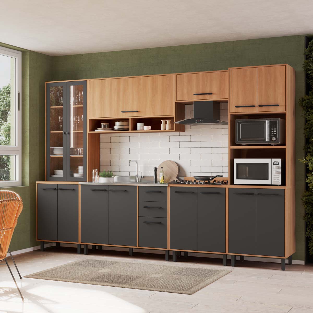 Cozinha Modulada Havana 320x220cm 15 Portas 2 Gavetas Pés Reguláveis