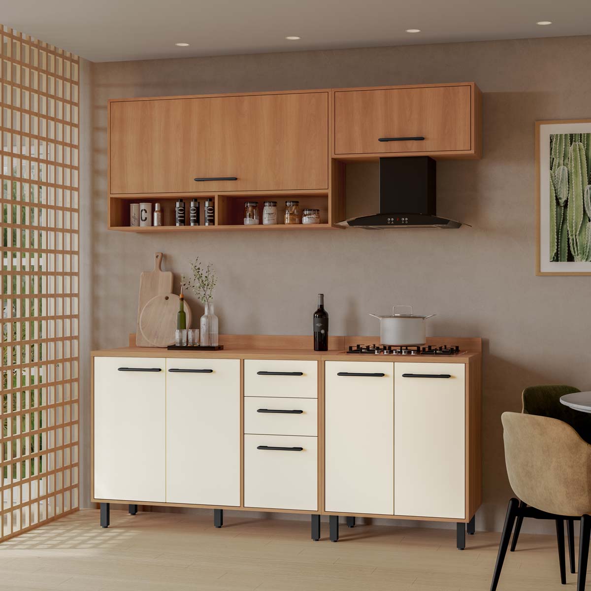 Cozinha Modulada Havana em MDP 190x220cm 7 Portas 2 Gavetas com Pés