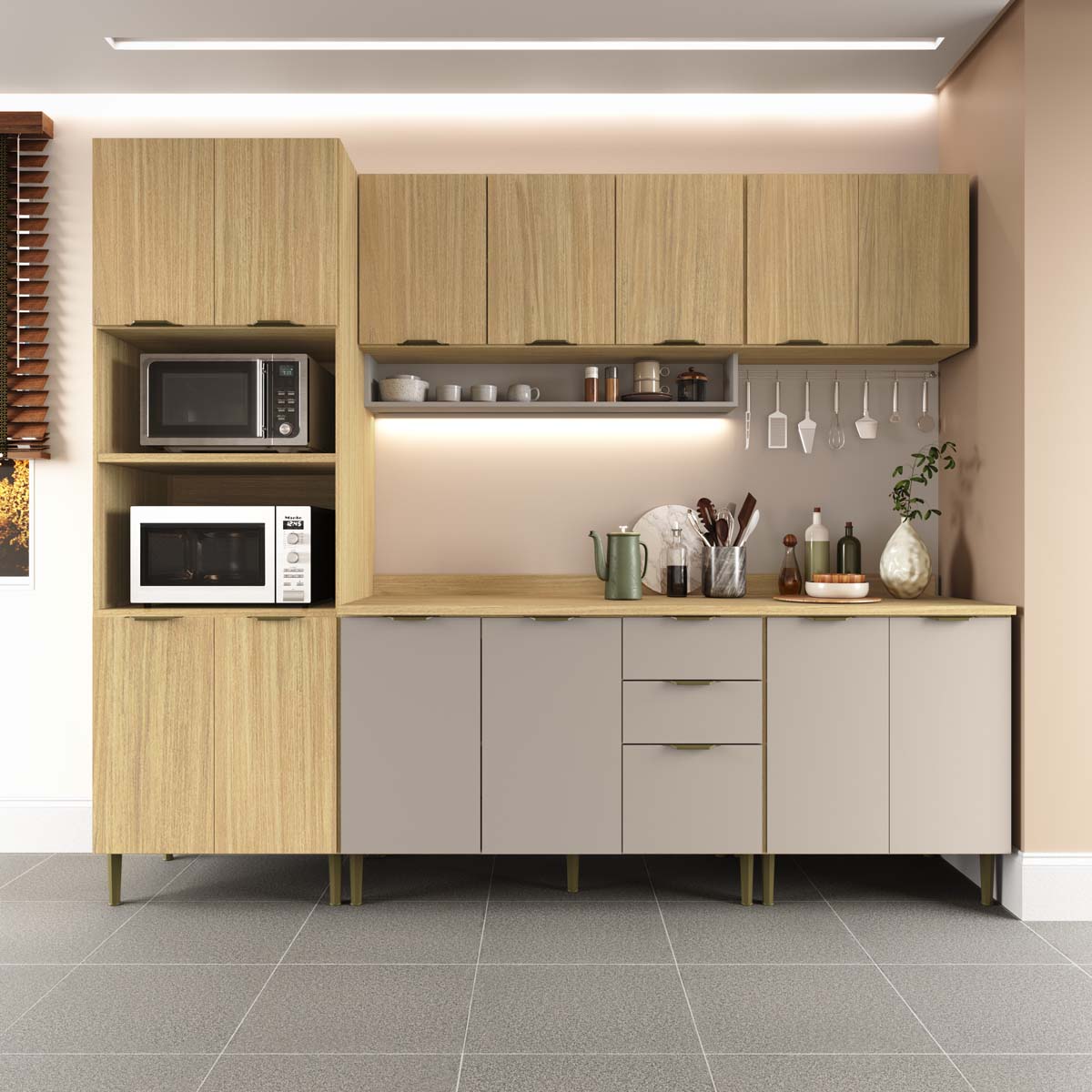 Cozinha Modulada Ibiza em MDF 14 Portas 260cm com Tampo Pés Ajustáveis