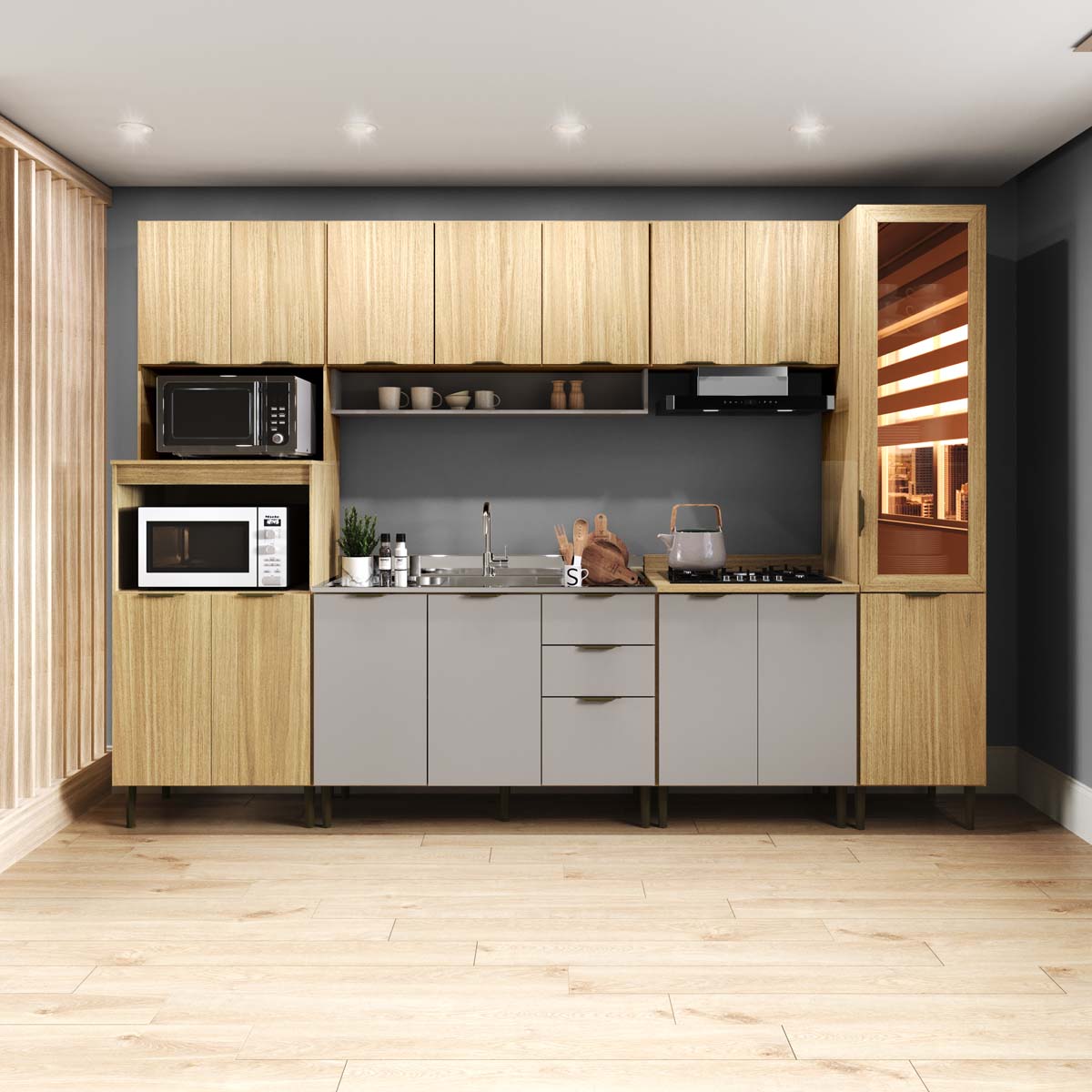 Cozinha Modulada Ibiza em MDF 16 Portas 300cm com Tampo e Pés