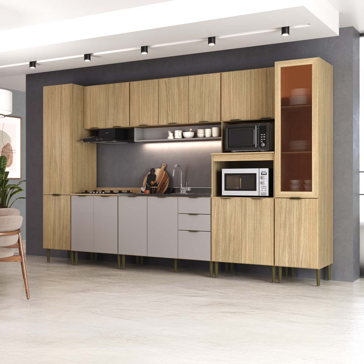 Cozinha Modulada Ibiza em MDF 18 Portas 340cm com Tampo e Pés
