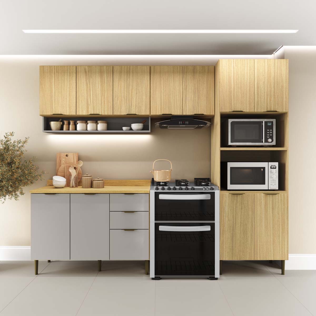 Cozinha Modulada Ibiza MDF 12 Portas 260cm com Tampo e Pés Ajustáveis