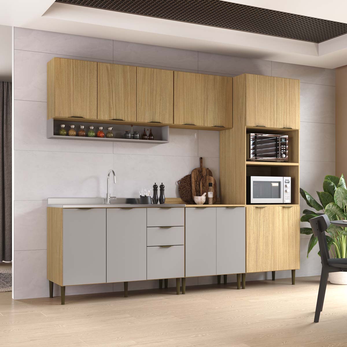 Cozinha Modulada Ibiza MDF 14 Portas 260cm com Tampo e Pés Ajustáveis