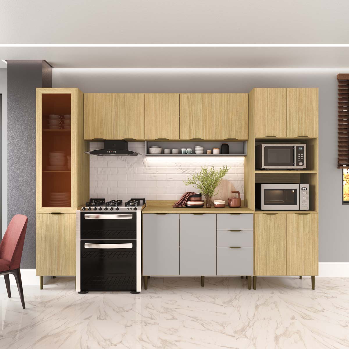 Cozinha Modulada Ibiza MDF 14 Portas 300cm com Tampo com Pés