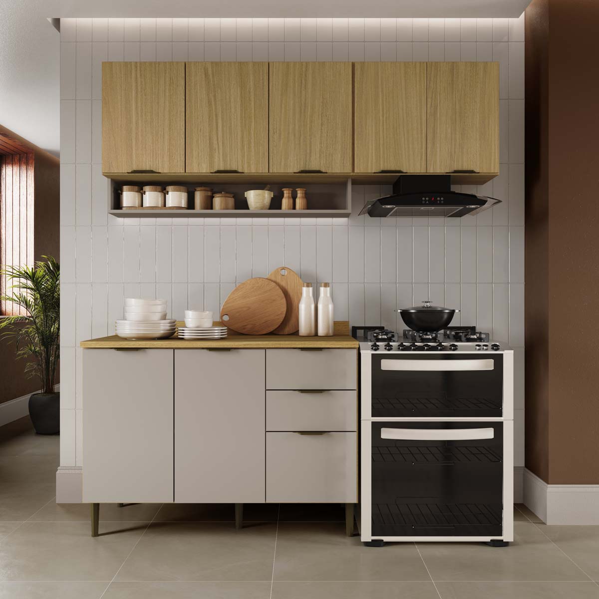 Cozinha Modulada Ibiza MDF 8 Portas 190cm com Tampo e Pés Reguláveis