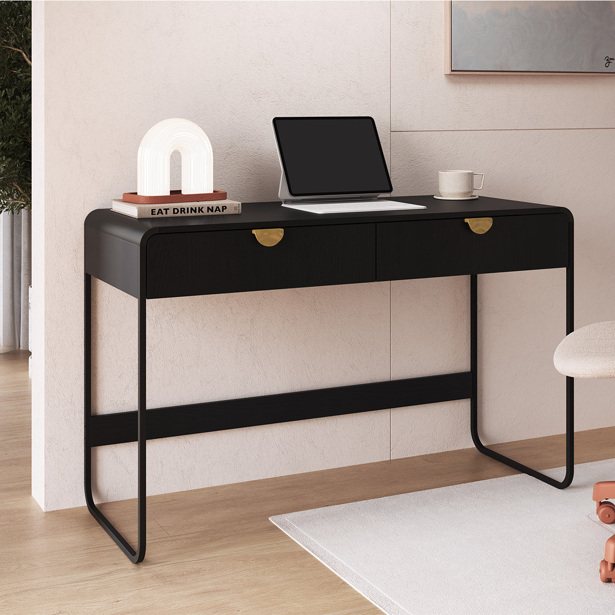 A Escrivaninha Luna é confeccionada em MDP com acabamento BP e pés metálicos, móvel com ampla superfície para trabalho e estudos, conta com duas gavetas para guardar acessórios, tornando o espaço mais organizado. A linha Luna alia durabilidade e facilidade de manutenção, enquanto os pés metálicos trazem um toque contemporâneo e sofisticado, foi criada para refletir o equilíbrio entre modernidade e funcionalidade. Inspirada em formas orgânicas e com design que valoriza os cantos arredondados, cada peça é pensada para se integrar com naturalidade aos mais diversos ambientes.