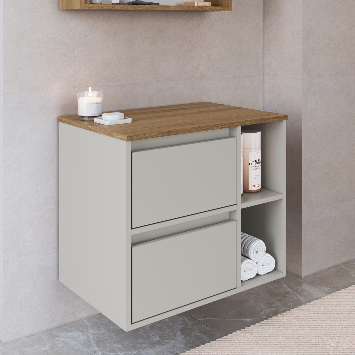 Gabinete Suspenso 60cm 2 Nichos com Porta Basculante e Gaveta
