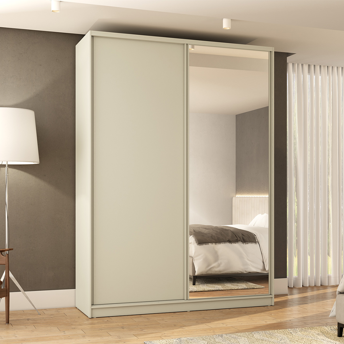 Guarda Roupa Bend em MDF 174x240cm 2 Portas de Correr com Espelho