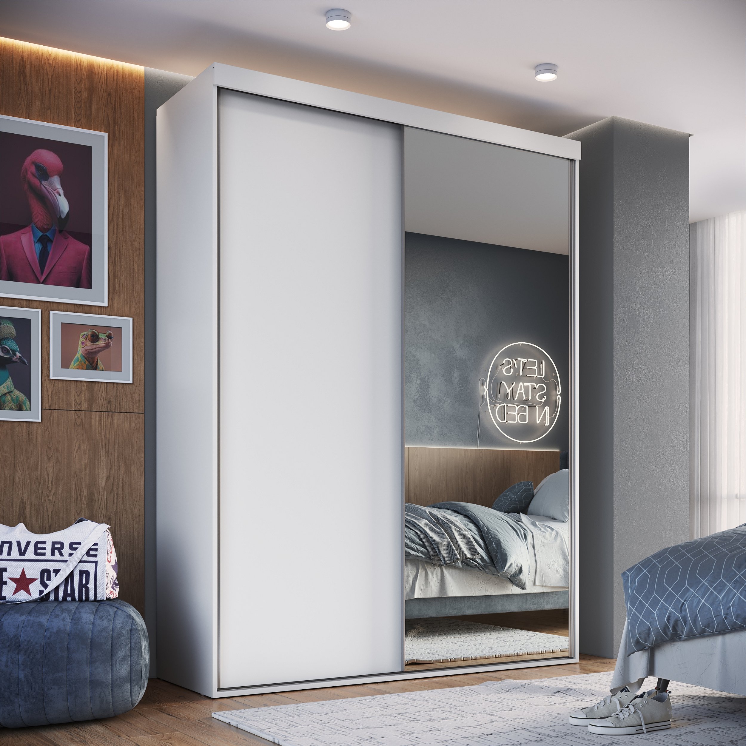 Guarda Roupa Solteiro 165cm 2 Portas de Correr com Espelho e Cabideiro