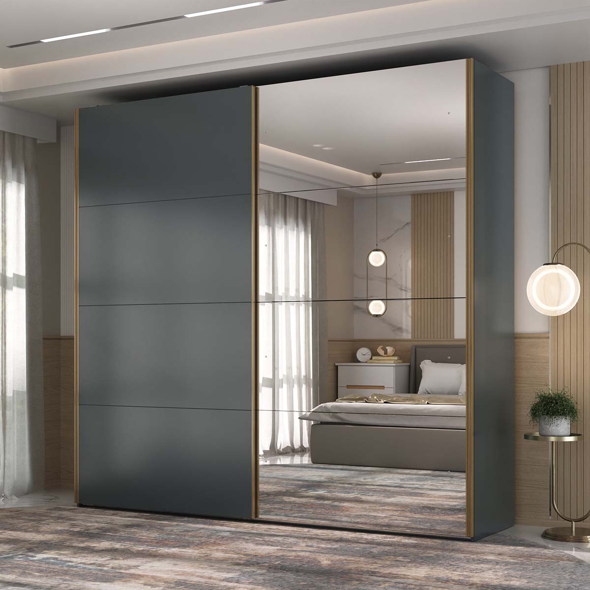 Guarda Roupa Trentino em MDF 242,3x230cm 2 Portas com Espelho