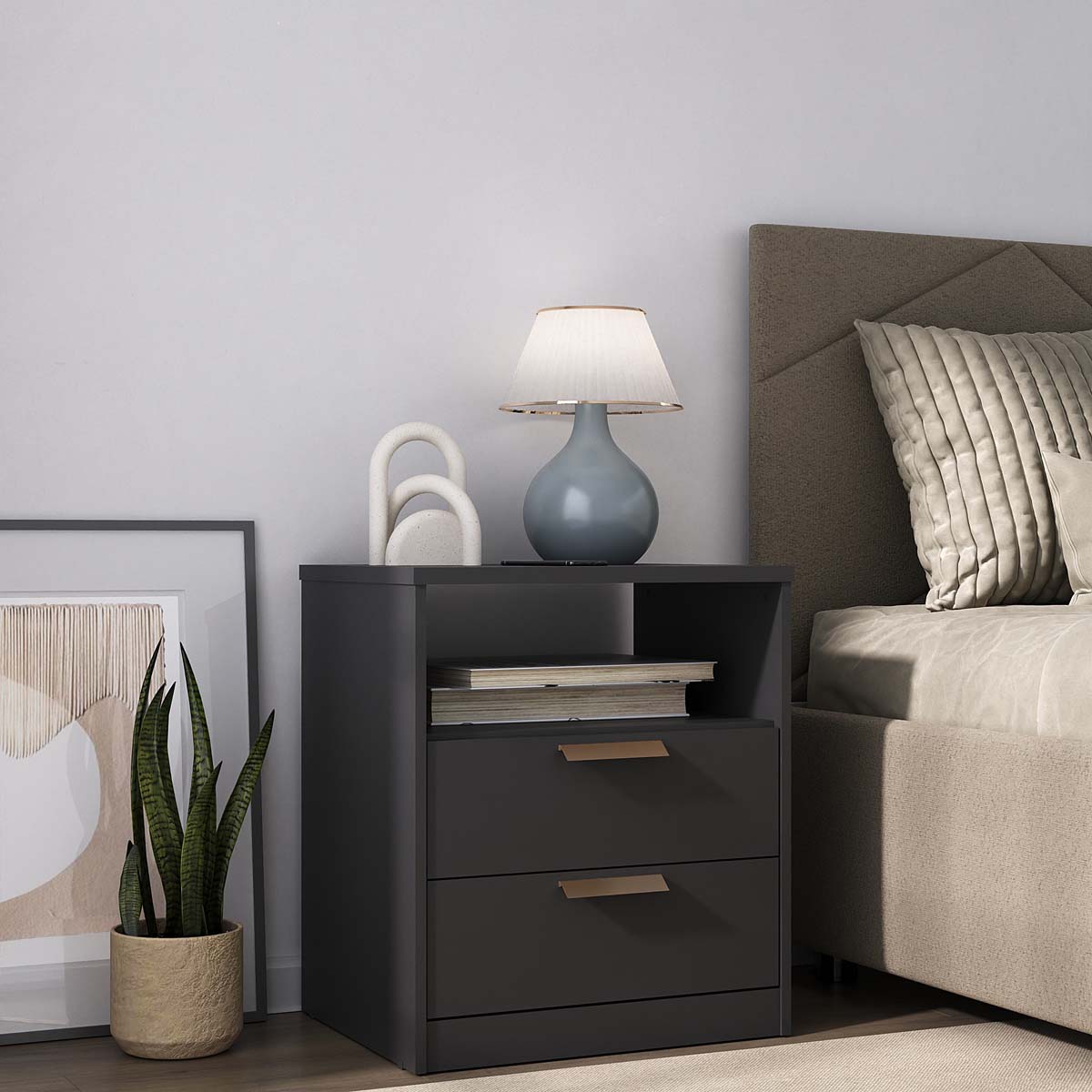 Mesa de Cabeceira Divino em MDF 56,7x65cm com 2 Gavetas