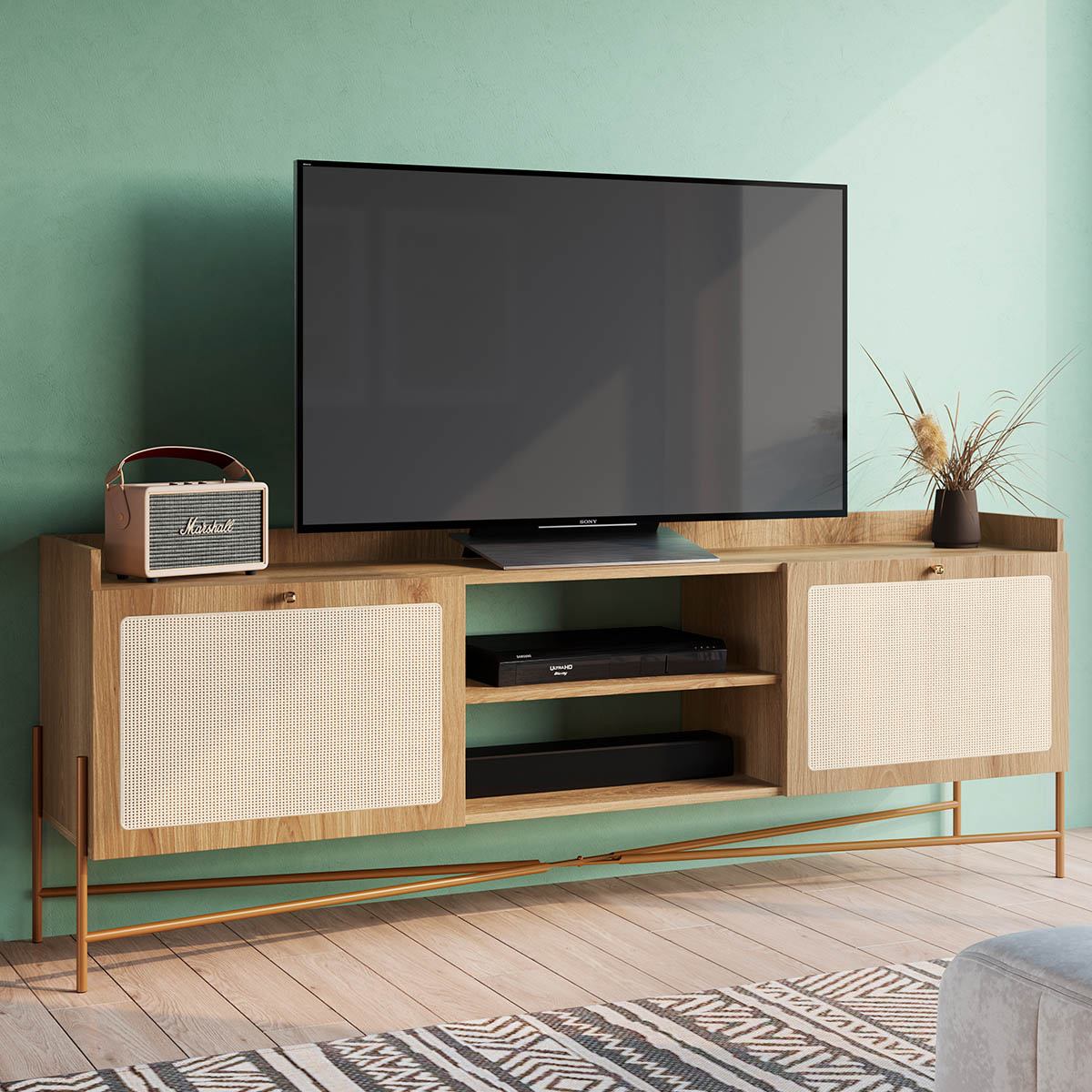 Rack 2 Portas 183cm Palhinha Pé Metal Oslo Hanover/Dourado