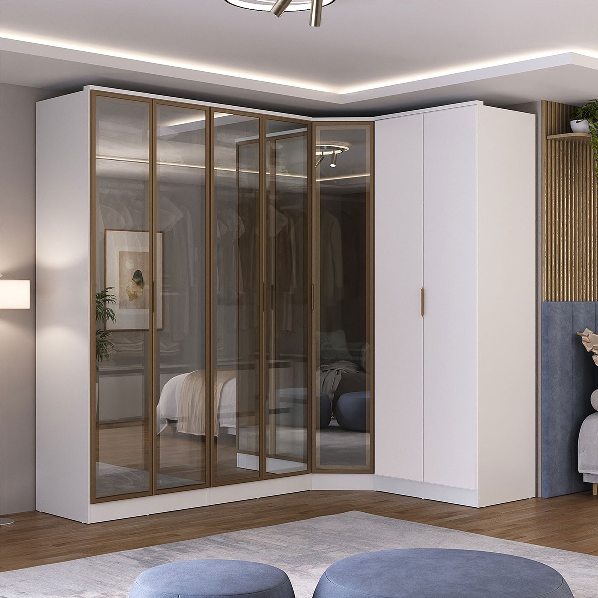 Roupeiro Modulado Ravi em MDF 7 Portas Reflecta 243,5x232,2cm Branco