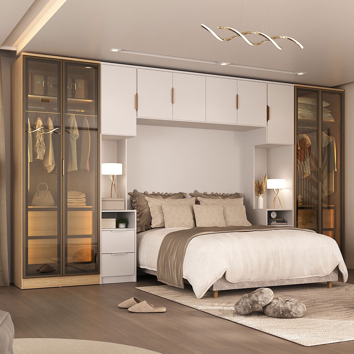 Roupeiro Modulado Ravi em MDF 414,5x232,2cm 10 Portas com Reflecta Branco/Olmo